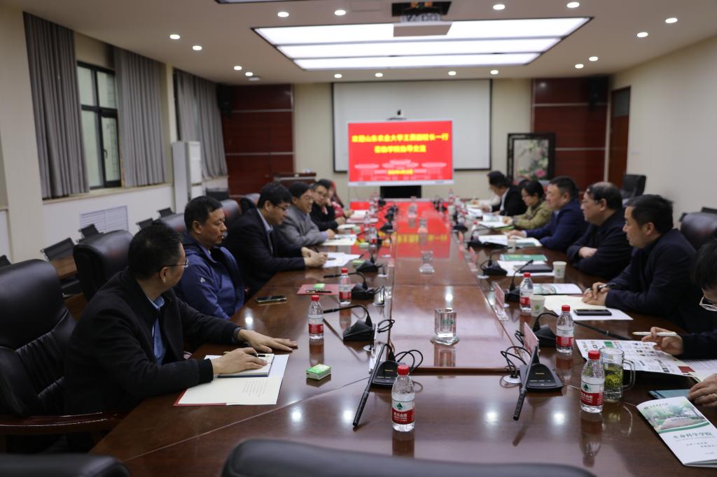 4月23日,山东农业大学副校长、pg电子中国官方网站院长王勇,山东农业大学pg电子中国官方网站党委书记赵延兵一行来pg电子官网考察交流,并在学院B201会议室召开座谈会,pg电子中国官方网站副校长、pg电子中国官方网站院长张立新,pg电子中国官方网站执行院长、党委副书记王刚及学院领导班子成员参加座谈会。会议由pg电子中国官方网站副院长臧国轻主持。